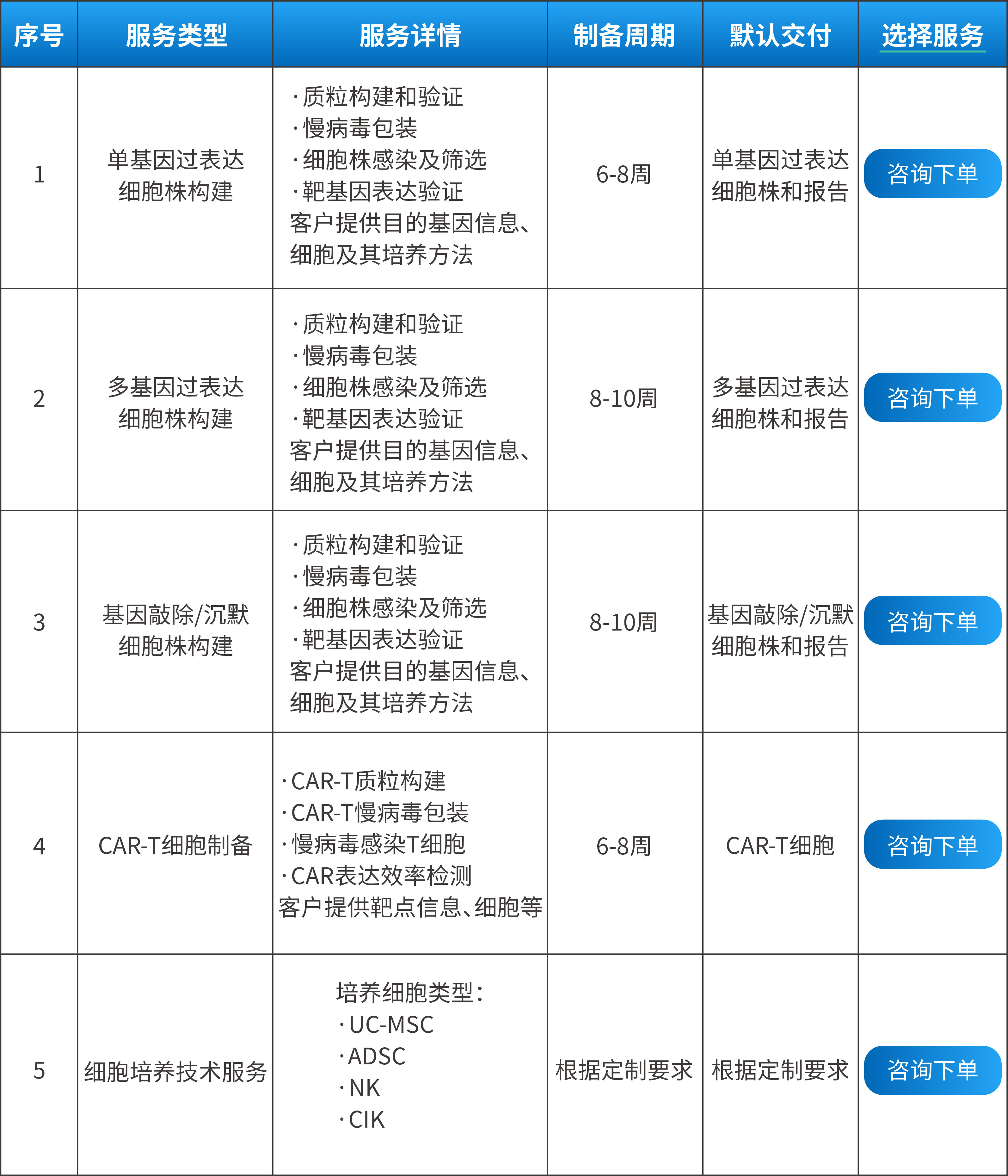 細(xì)胞產(chǎn)品生產(chǎn)中心可為客戶提供CAR-T、NK、CIK、γδT、NKT、MNC、MSC、穩(wěn)轉(zhuǎn)細(xì)胞株構(gòu)建等細(xì)胞制備服務(wù)。