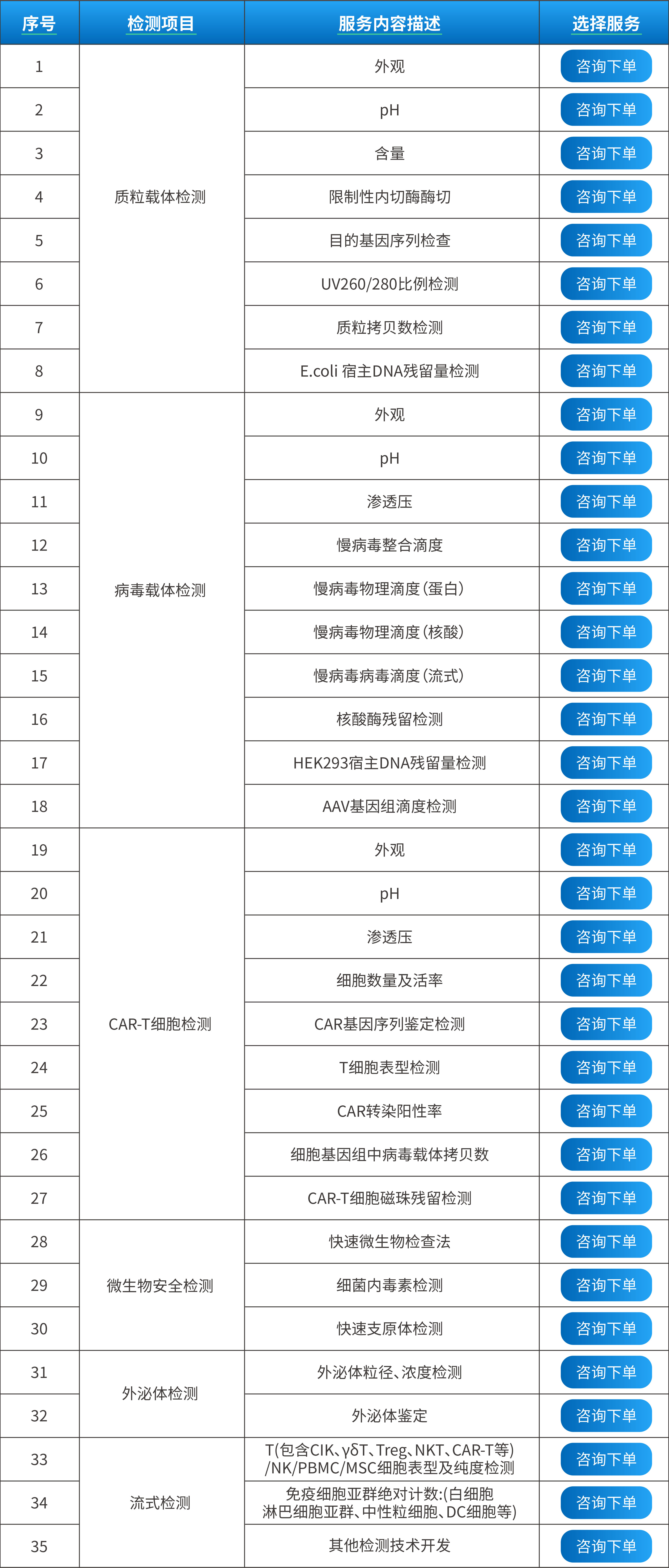 麗山生物擁有先進(jìn)的CGT檢測技術(shù),涉及細(xì)胞生物學(xué)、分子生物學(xué)、免疫學(xué)、微生物學(xué)、病毒學(xué)和物理化學(xué)等六大類學(xué)科共計19個小項,依托世界尖端檢測儀器設(shè)備,有效保障及控制在開發(fā)中安全性風(fēng)險。