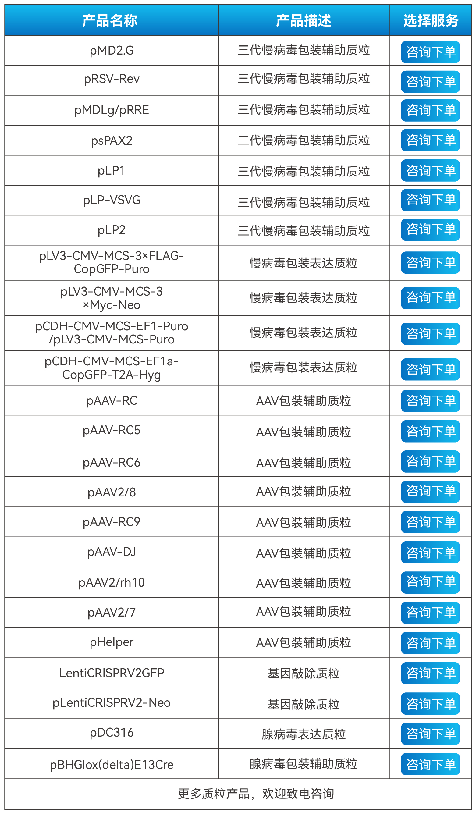 質(zhì)粒是具備自主復(fù)制能力的小型閉合環(huán)狀DNA分子,能夠表達(dá)所攜帶的遺傳信息。人為構(gòu)建和生產(chǎn)的質(zhì)粒DNA載體,是目前基因治療研究、藥物制備的常用工具之一。麗山生物對(duì)于不同下游應(yīng)用方向(如新藥開(kāi)發(fā)研究、臨床研究以及商品化生產(chǎn))可以提供不同級(jí)別的現(xiàn)貨質(zhì)粒產(chǎn)品。麗山生物現(xiàn)貨質(zhì)粒產(chǎn)品,品種全,數(shù)量多,貨期短,歡迎咨詢(xún)選購(gòu)!